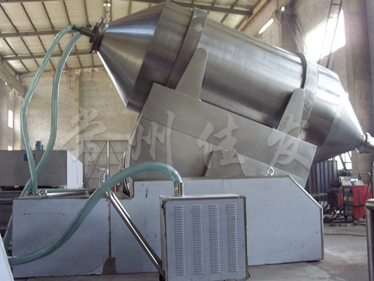 本機(jī)混合筒在傳動(dòng)的同時(shí)又參與擺動(dòng),使筒中物料得以充分混合,混合筒的出料帶有螺旋葉片,使該機(jī)具有混合迅速,混合量大,出料便捷等特點(diǎn)。