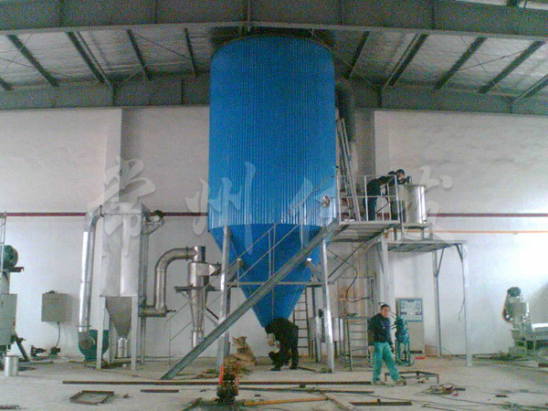 This machine atomizes the material into small droplets through a hydraulic pressure nozzle, and completes drying by convection with hot air inside the tower to obtain granular products.